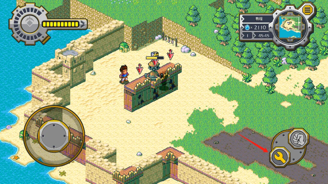 玩法很简单,下载安装后,点击开始新游戏,先过剧情,之后爷爷会给任务,比如去海边修筑围墙。进入建造模式,拖动围墙放置指定地点,放错可旋转或售卖。遇到发条人进攻,就建造炮台抵御。击败敌人能搜刮源能用于建造或修理构筑物。战斗时,左边摇杆控制角色移动,右边按钮和NPC互动,点击左下方切换建筑,再点绿色对勾放置,每个建筑消耗点数,击败敌人回收资源增加点数。放好建筑点击左上角红色按钮开始战斗,还能亲自操控角色或看炮塔消灭敌人。游戏还有全新无尽模式等你挑战,快来体验吧!