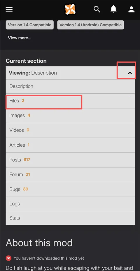 2、然后再搜索栏中搜索自己想要的mod下载,以钓鱼mod为例,搜索skip fish。