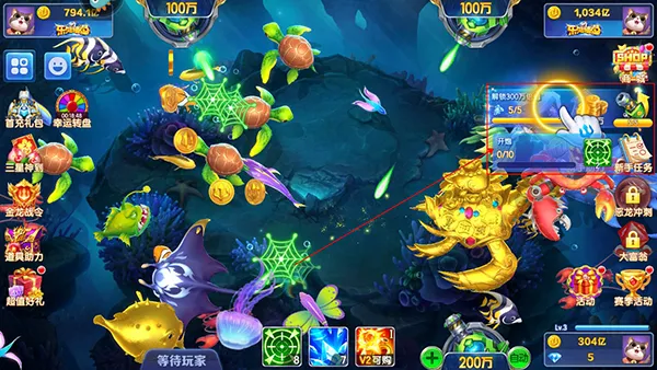 这个版本能解决你捕鱼时金币不足的问题。免费领金币途径超多,比如商城每日、每周、每月都能免费领0元礼包;完成任务可获金币;参加活动开宝箱也能得金币;赛季战令随等级提升领金币道具,购买战令领得更多;新手有七日助力,完成任务领大量资源;每日签到也能领金币等资源。