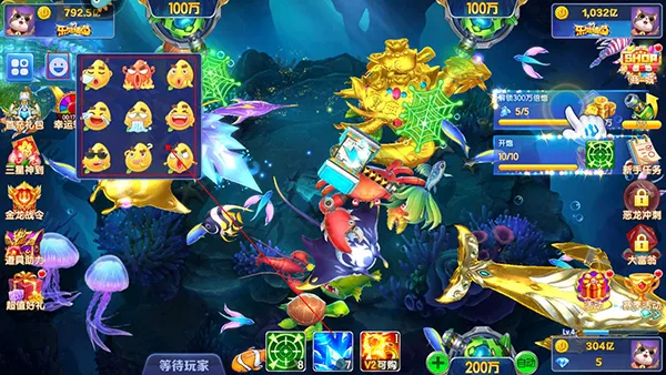玩法也很丰富,点击右下角快速开始或选倍数场就能捕鱼,点击屏幕控制炮塔发射炮弹,瞄准价值高的鱼消灭得金币。右上角有炮塔任务和新手任务,完成有丰厚奖励。左上角可打开更多页面,实现炮台切换、游戏设置、查看图鉴、切换捕鱼房间、离开房间等功能。还有表情和技能道具可玩,技能道具使用数量有限,没了需补充。快来体验吧!