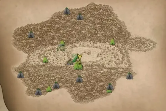 -营地分布,竹林附近,外加北面湿地的两个口。主基地在湖南面(除了主基地的营地,都是为了过夜和躲雨)