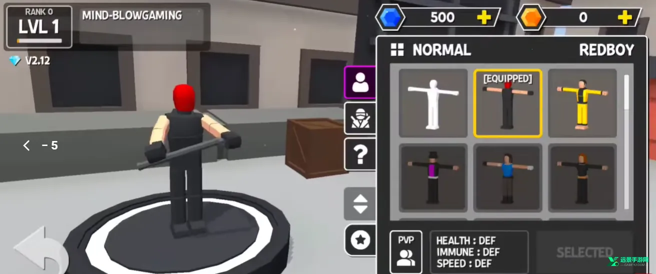 1、打开人类大乱斗游戏后,进入“皮肤”界面,自由更换角色造型。